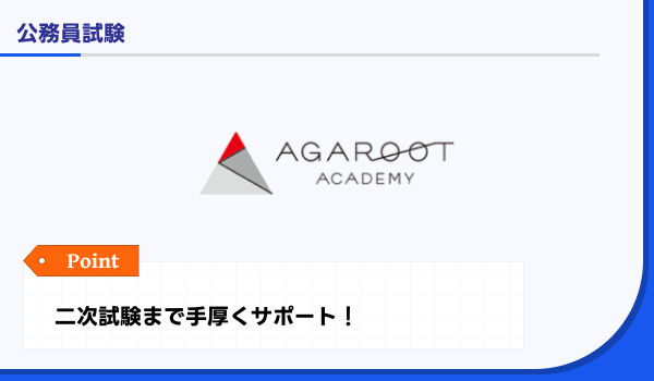 アガルート | コンパクト講義で効率学習+スマホ視聴に最適 | 国家総合職(教養区分)対策カリキュラム129,800円〜 【教養+専門型】地方公務員・国家一般職・専門職カリキュラム/フル(大卒)349,800円 | 累計合格者数469名(2022~24年度) | 月1回の定期カウンセリング+面接・官庁訪問対策 | 内定で「全額返金」または「ギフト券3万円」 | 通信 |