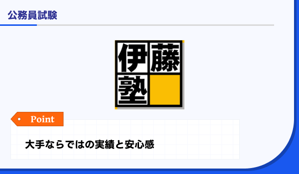 伊藤塾 | 法律系に強く、個別指導・ゼミが充実 | 地方上級コース298,000円 国家一般職+地方上級コース328,000円 国家総合職(法律区分・教養区分)コース598,000円 | 2025年国家総合職内々定率83.3% | 個別指導・オンラインゼミ・模擬面接などの対面/オンライン支援 | 早期割引・再受講/再挑戦割引など多数 | 通信+通学 |