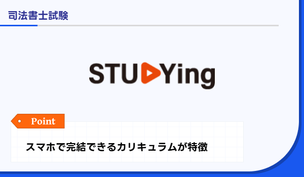 スタディング | スマホ完結の動画・問題演習でスキマ時間学習に最適 | 司法書士合格コース コンプリート 99,000円 ベーシック 69,300円 | 具体的数値は非公表 | 学習Q&Aサービス(チケット制) 学習履歴の可視化機能 | 合格応援キャンペーンで最大11,000円OFF | 通信 |