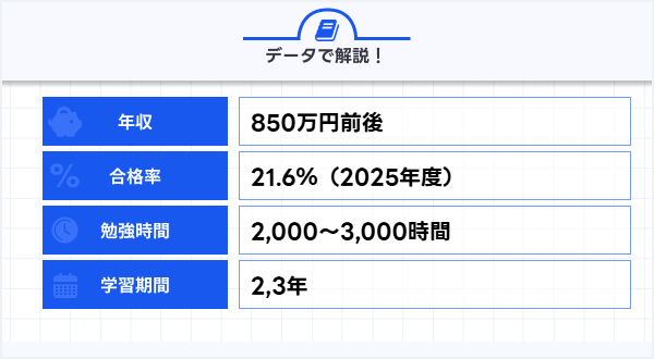 2025年度の合格率は21.6%、科目別は概ね1~2割台です。