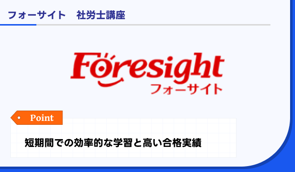 フォーサイトの社労士講座は、「短期間で効率的に合格を目指せる通信講座」として人気があります。