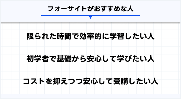 またフォーサイトの教材は、「合格に必要なポイントに絞られた効率的な設計」として高く評価されています。