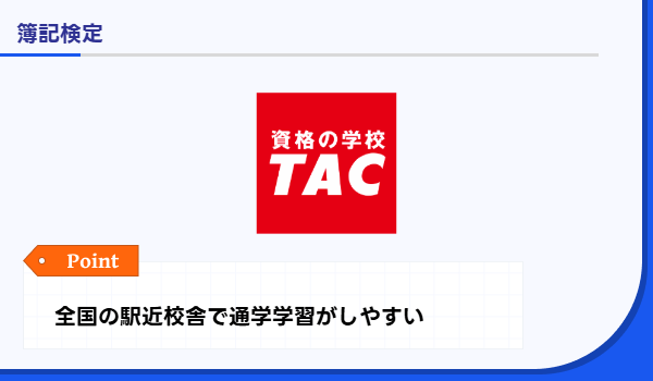 簿記において高い支持を得ているTAC出版の人気書籍を使用している点も特徴です。