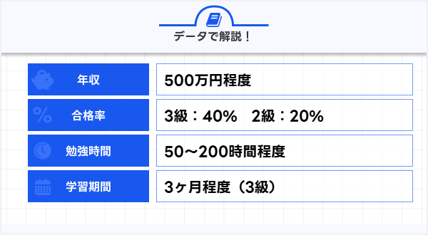 1級は最も難易度が高く、合格率は低めですが、3級は比較的高い合格率を記録しています。