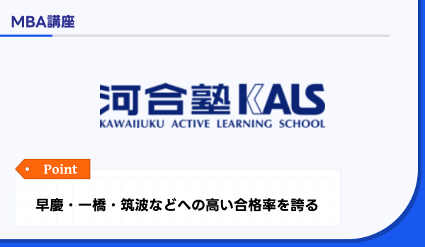 河合塾KALSは、MBA受験における「王道の安心感」と「体系的な指導力」を兼ね備えた総合校です。