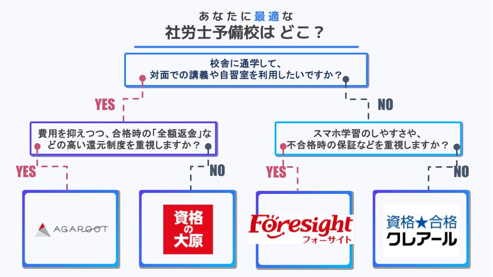 【フローチャート】あなたにおすすめの社労士予備校は?