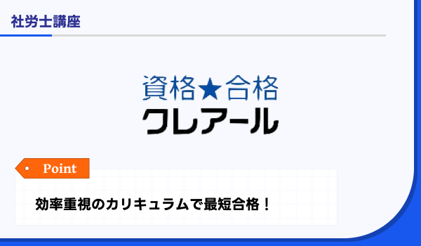 クレアールの社労士講座は、限られた学習時間でも合格を目指せるように設計された効率重視型の通信講座です。