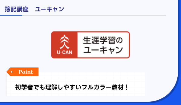ユーキャンの簿記講座は、通信教育大手ならではの教材開発力とサポート体制を活かし、初学者でも無理なく学べるきめ細かな設計が特徴です。