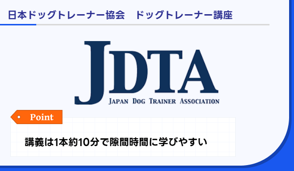 日本ドッグトレーナー協会(JDTA)は認定団体として「ドッグトレーナーズカレッジ オンライン講座」を提供しています。