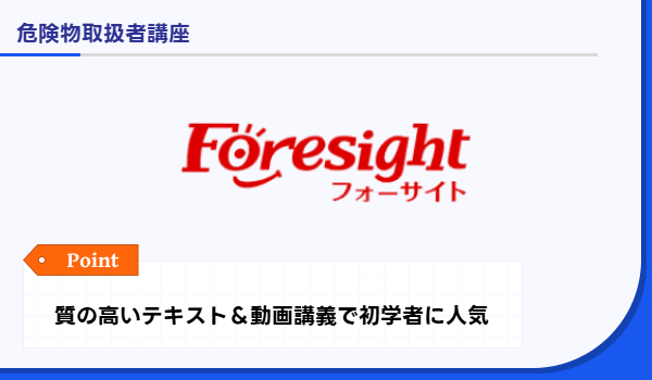 フォーサイトの危険物取扱者講座は、短期間で効率的に学習したい方に適しています。