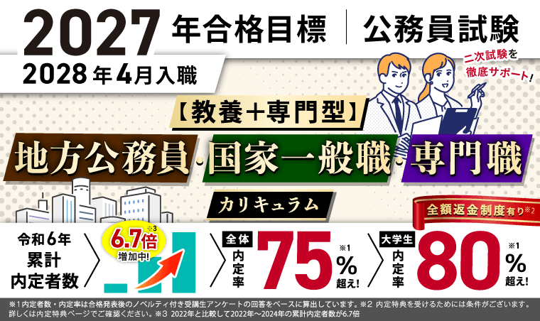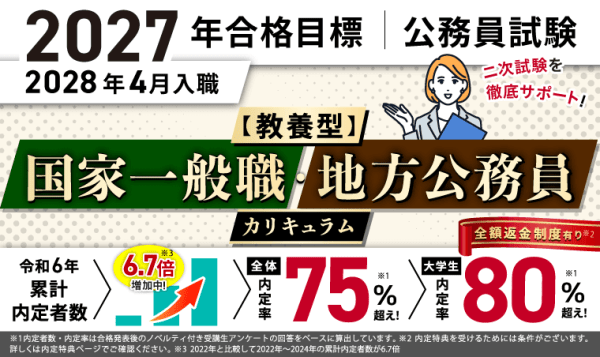〖2027年合格目標〗〖教養型〗国家一般職・地方公務員カリキュラム/フル | 239,800円 | 教養科目を中心に一次〜二次までフルフォロー。 |
