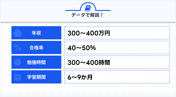 初学者の場合、合格までに必要な学習時間は300〜400時間が一般的とされています。関連資格の取得した経験がある場合はそれ以下でも十分です。