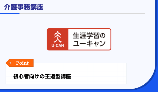ユーキャンの介護事務講座は、「はじめて介護事務を学ぶ人」を強く意識した王道型の通信講座です。