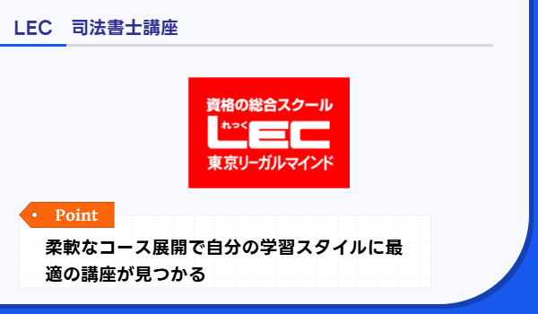 LECの司法書士講座は講師陣による出題予想や短答模試の精度が高いと感じる声も寄せられています。